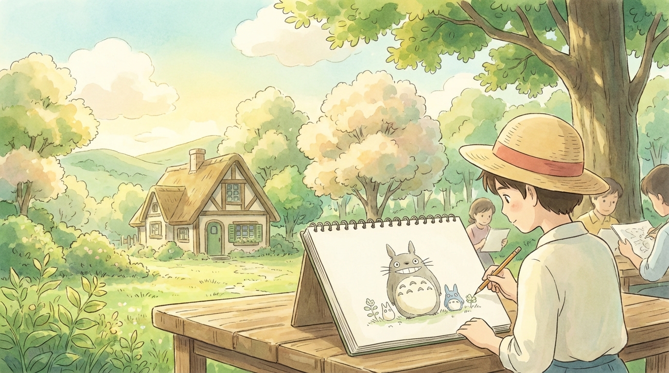 サイズの異なるトトロたちが並ぶ場面は、世界の広がりをさりげなく感じさせます。大トトロだけでなく、中トトロ、小トトロが存在することで、この世界には人間の知らない生態系があるのだと自然に理解させられます。特に小トトロが素早く動き回る様子は、森の中の小さな生命の象徴のようです。トトロたちは説明される存在ではなく、「見て感じる存在」として描かれており、想像の余白を残す見せ方が魅力です。